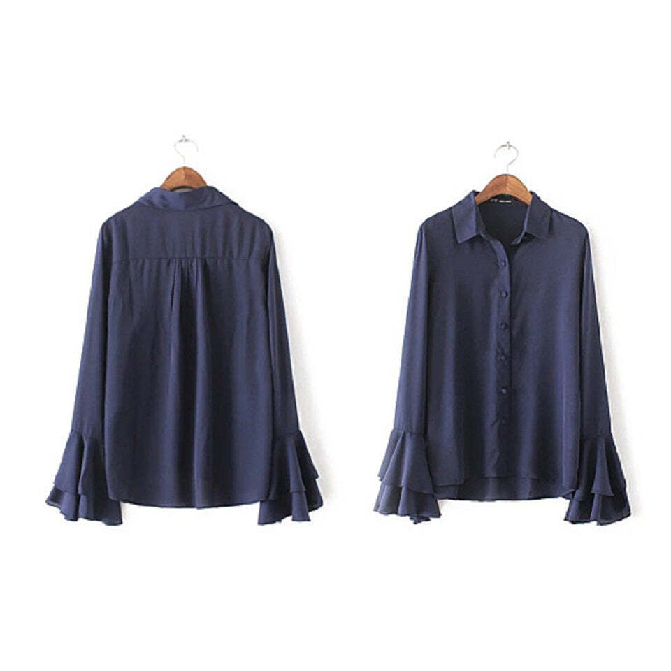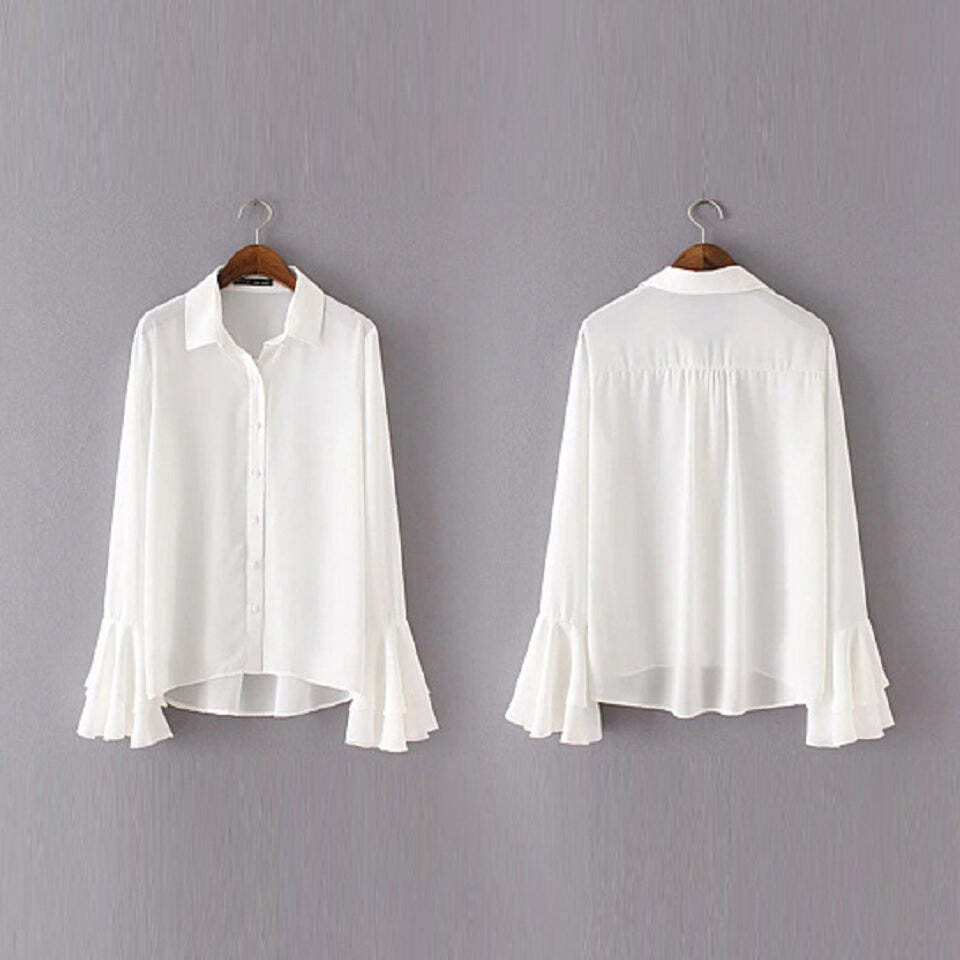 Wear to work and play…Look sweetly sophisticated no matter what you are up to…! Wear to the power lunch and prove workaholics can also be stylish! Wear for the after-hours club, hoping to look flirty and playful! Rock these ruffled bell sleeves and you are dressed to impress… Look at the part with Labella and get everything you dream of.Details:The shirt is made of breezy Chiffon.Breezy and light, it makes you look sweetly sophisticated with its ruffled bell sleeves.This fabric button front shirt has a small, relaxed collar and a hi-lo hemline.It comes in sizes S, M, L, XL, and 2XL. See size chart for details.It comes in colors like Sheer White and Club Blue.It comes neatly packed in a bag.A lacy cami or a shirt extender layer is recommended for a more modest and feminine look and feel. Size Chart: Small — Bust 34″ / Sleeve 24″ / Length 23.5″.Medium — Bust 35″ / Sleeve 25.5″ / Length 24″.Large — Bust 37″ / Sleeve 26″ / Length 24.5″.X-Large — Bust 38″ / Sleeve 27.5″ / Length 25″.2X-Large — Bust 40″ / Sleeve 28″ / Length 25.5″.