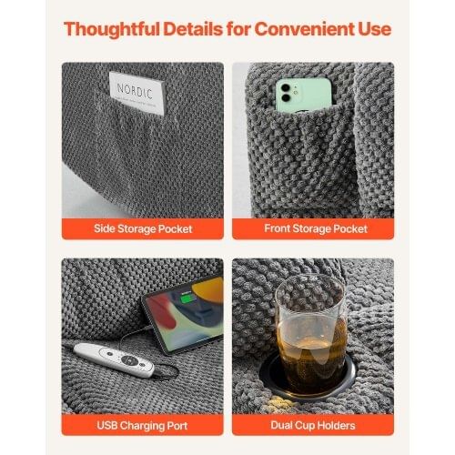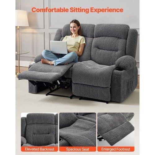 Seat Width: 23.2 in / 59 cm,Single Seat Weight Capacity: 330 lbs /150 kg,Footrest Height (when reclined): 18.9 in / 48 cm,ProductDimensions (LxWxH): 145° Position: 37 x 64.6 x 34.3 in / 94 x 164 x87 cm,Seat Depth: 21.3 in / 54 cm,Backrest Height (Inner): 27.6 in/ 70 cm,Item Model Number: A1504-2PLR,Seat Height: 18.9 in / 48cm,Material: Corduroy Fabric + Foam + Q235 Steel + WoodPanels,Reclining Angle: 110° – 145°,Net Weight: 138.9 lbs / 63kg,Armrest Height: 24 in / 61 cm